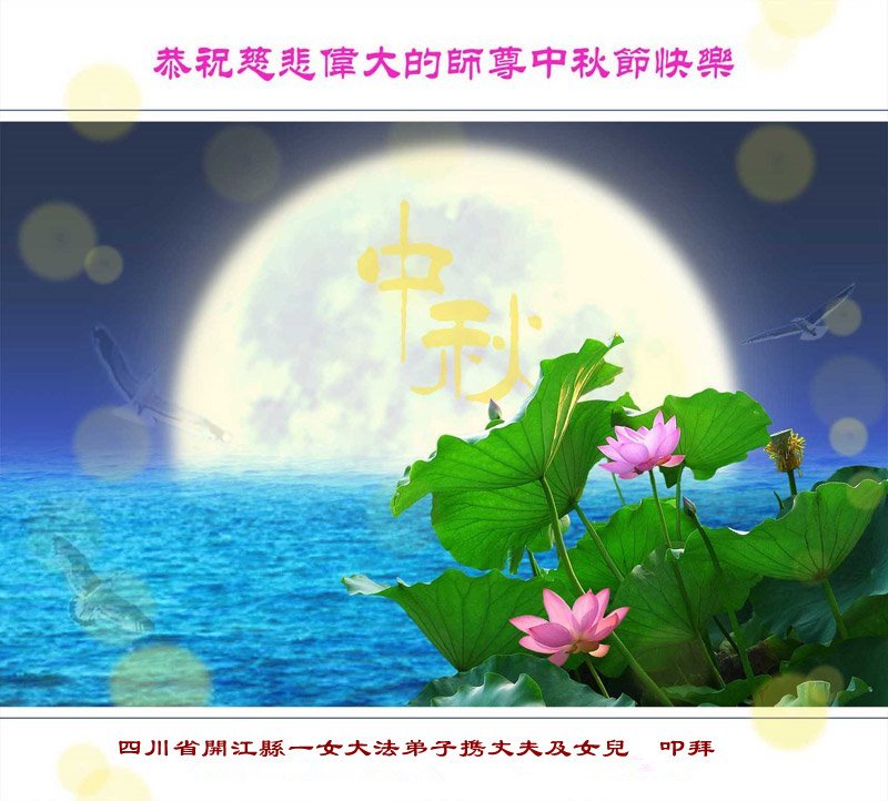 我們小組全體大法弟子恭祝慈悲偉大的師尊中秋節好!師尊對我們的慈悲呵護,我們無以回報,唯有盡力做好大法弟子應該做的三件事。