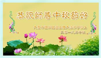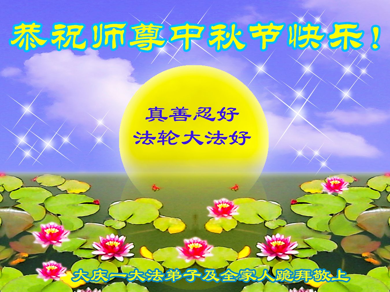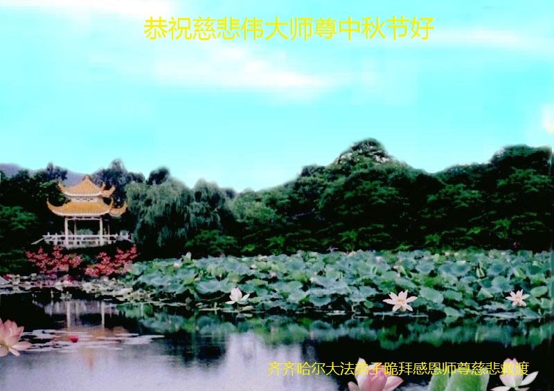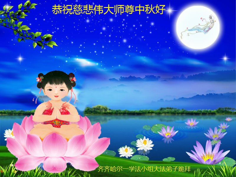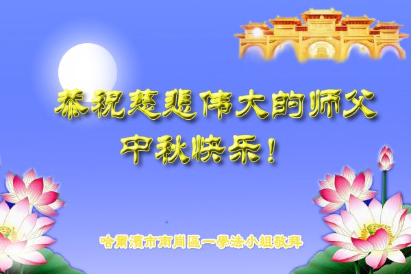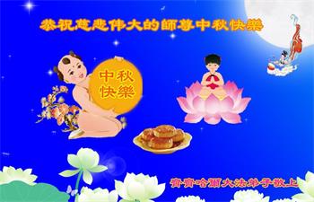 師尊好!又是一年的中秋佳節,我們非常想念師尊!祝師尊中秋節快樂!能成為大法弟子,我們感到非常榮耀和幸福。我們大法弟子不忘使命,講真相、救眾生,努力做好三件事,彼此溝通,互相配合,共同精進,圓滿隨師還。