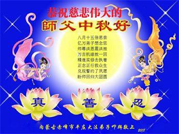 中秋佳節倍思親,弟子盼師早日回大陸。弟子一定精進實修,學好法,去人心,多救人,圓滿隨師還。