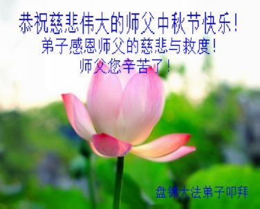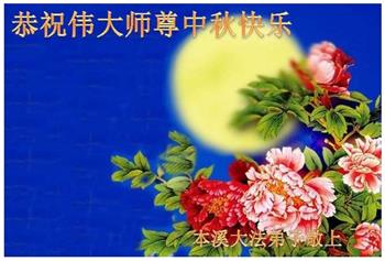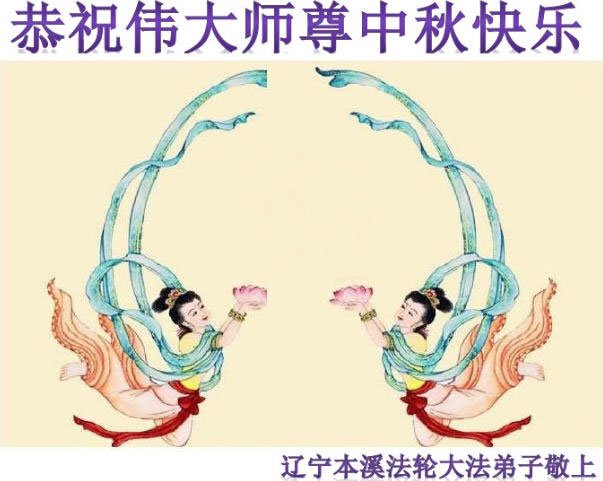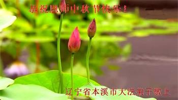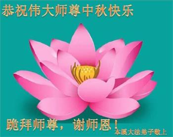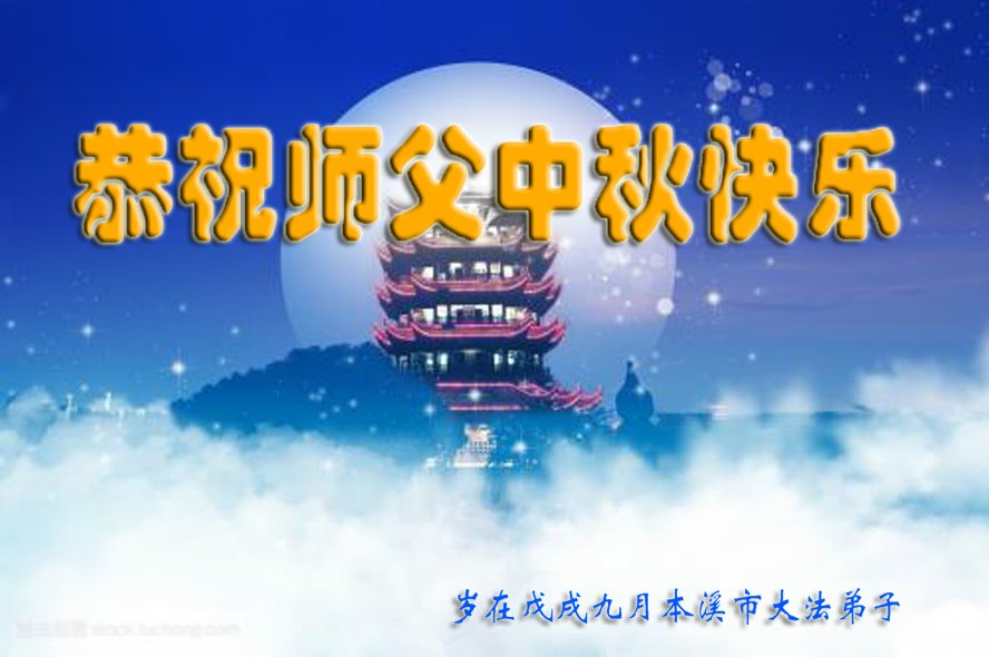 師尊您辛苦了!弟子們想念您!又是一年的中秋佳節,遼寧本溪的大法弟子們借此機會,祝願慈悲偉大的師尊中秋節日愉快!我們今生今世能做您的弟子,真是萬分的榮幸!弟子們無法用言語形容內心的感動,平淡的文字不能表達萬分之一,唯有努力做好三件事,記住師尊的殷切叮嚀,走好走正最後的路,來回報師尊!弟子們叩拜師尊!