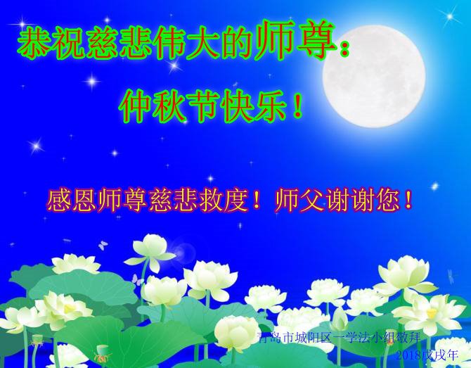 山東省青島市城陽區一學法小組的全體大法弟子攜全體家人恭祝師尊中秋快樂!