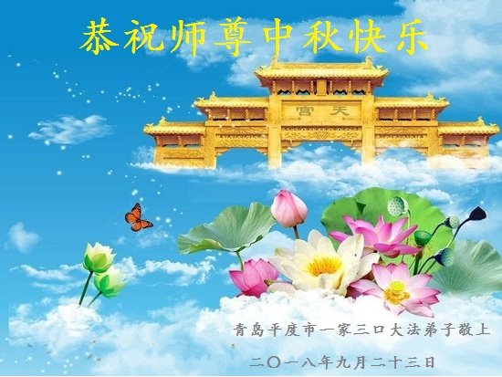 山東省青島市膠州市一家三位大法弟子恭祝師父中秋快樂!