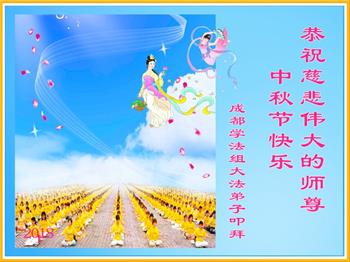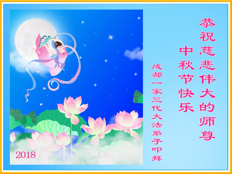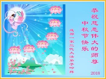 四川省成都市一家祖孫三代大法弟子恭祝師尊中秋節快樂!師尊辛苦了!叩謝師恩!