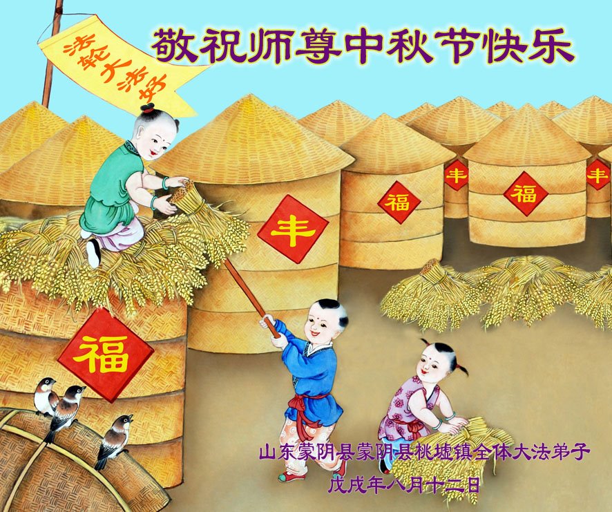 山東省臨沂市蒙陰縣垛莊鎮全體大法弟子恭祝慈悲偉大的師尊中秋節快樂!