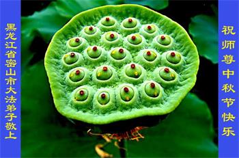 我全家從1995年接觸大法以來,一直受到恩師的慈悲護佑。2009年再入大法修煉,跟頭把式似的跌跌撞撞,師尊從未因我們做的不好而放棄我們。我們無以回報師父的付出,唯有精進修煉,按照師父的安排走好以後的修煉路,再入熔爐除情慾,提高心性驅邪魔,中原無霾時,跪迎恩師歸,師徒團圓賀中秋。