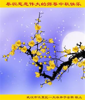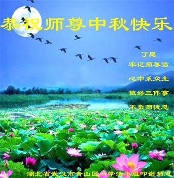 二零一八年的中秋節即將到來,我們大陸大法弟子非常想念師尊,雖然修煉不精進,但師尊一直在呵護著弟子,沒有師尊的保護,弟子寸步難行,請允許我代表湖北省直屬事業單位的所有大法弟子及家人恭祝師尊中秋節快樂!弟子們一定要多學法,做好三件事,圓滿隨師還。
