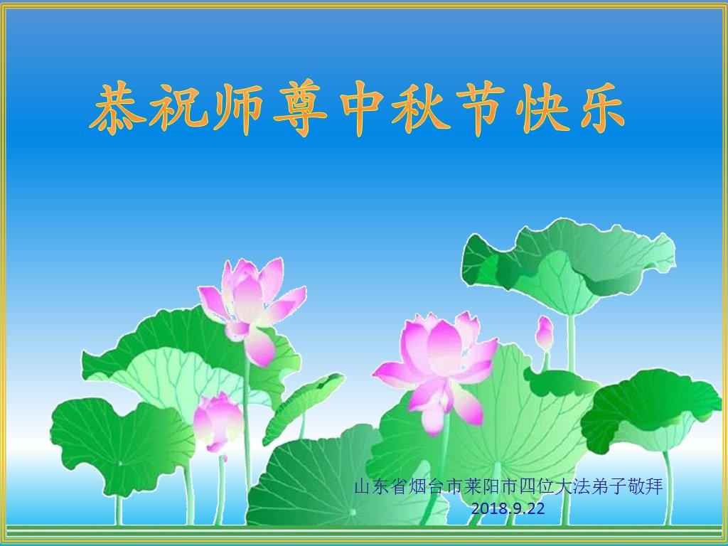 又是一年的中秋佳節,在萬家團圓的日子,山東省招遠市一學法小組全體大法弟子及家人恭祝師尊中秋節快樂!遙寄對師父的思念,感恩師尊的諄諄教誨和慈悲救度,並要繼續精進實修。