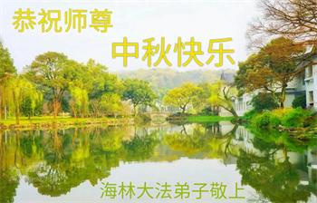 向最偉大的師父致以最崇敬的問候:師父中秋節快樂!弟子想念您,師父太操勞了,為不爭氣的弟子操碎了心。但是,弟子再也不會消沉迷失,我一定要在神的路上奮起直追!一定要加強正念,向內找,向內修,不斷修好自己,做好三件事,用勇猛精進向上向善的純淨的心靈來報師恩!跟上您的正法進程,跟師父回家。