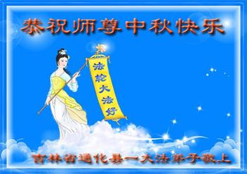 尊敬的師父您好:值此中秋佳節之際,弟子一定緊跟師父的腳步,跟上正法進程,走出一條自己的正法之路。不辜負師尊的慈悲救度,謝謝師尊!