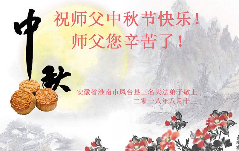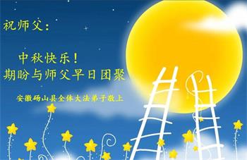 安徽省宿松縣全體大法弟子恭祝師父中秋節快樂!我們一定精進實修,做好三件事,讓師父少操心!