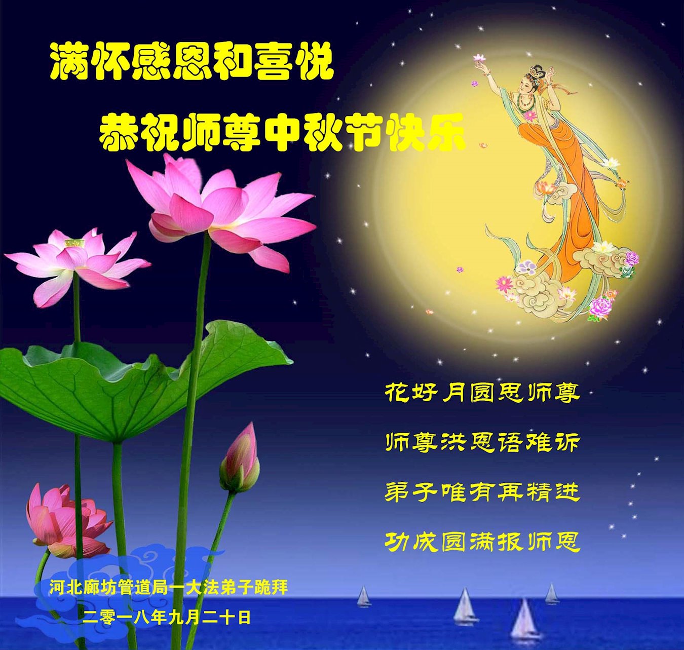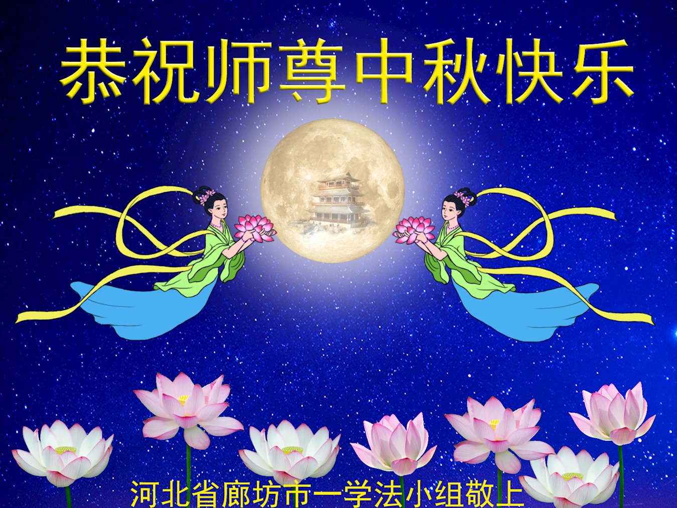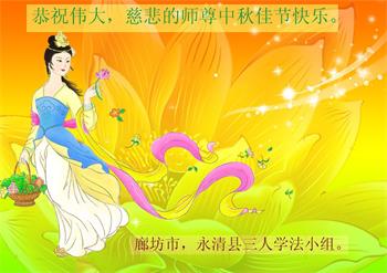 河北省廊坊市三人學法小組大法弟子恭祝師父中秋快樂!