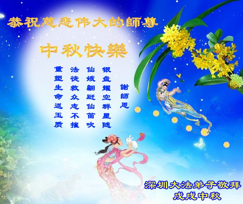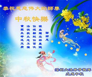 深圳大法弟子隔洋遙祝師尊中秋快樂!實修自己,放下各種執著心,做好三件事。