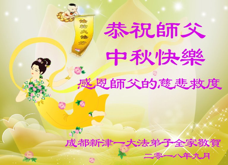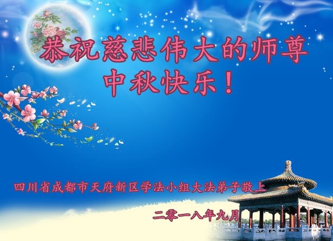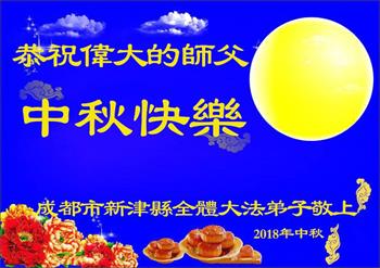 在這中秋闔家團圓之際,我們新津縣全體大法弟子恭祝慈悲偉大的師父中秋快樂!感恩師父的慈悲救度!千言萬語都難以表達我們對師父的感恩和思念,我們唯有學好法,做好「三件事」,在這最後的修煉時間裏精進、再精進!