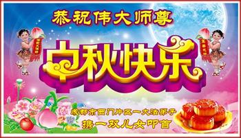 我們是成都市武侯區幾個學法組的大法弟子。師尊您辛苦了!又到中秋節我們大家想念您。請師尊放心我們會遵照師尊安排的路走得最正,做的更好。我們大家給師尊跪拜磕頭了。謝謝師尊的保護,我們都很安全,一定要做好師尊所要的。