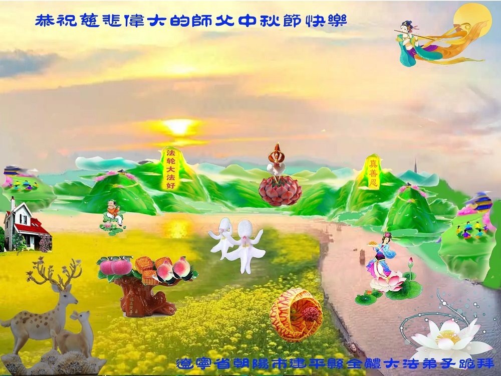 遼寧省朝陽市全體大法弟子跪拜合十恭祝慈悲偉大的師尊中秋節快樂!