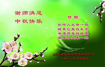 感恩李洪志師尊慈悲救度,決心抓緊時間精進實修,完成使命,跟師父回家!祝師尊中秋快樂!