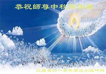 我們是中國江蘇常州的幾位老年大法弟子,我們都是99年以前得法,現在已經是六十多至八十七,我們算是一個學法小組,中秋團圓之日恭祝師尊中秋快樂!我們今生有幸得法,感恩師尊,堅信師尊,跟師尊回家。利用我們的條件和環境學好法,做好三件事。