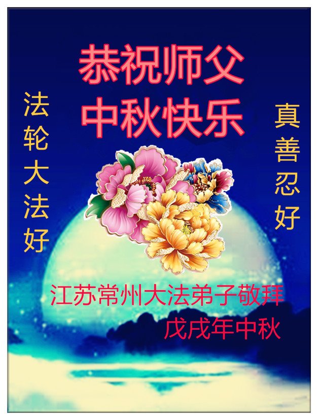 江蘇常州大法弟子恭祝師父中秋快樂!謝謝師父慈悲苦度!