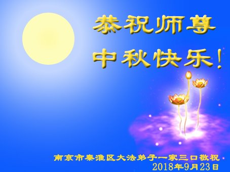 中秋佳節即將到來,我們祝您節日愉快!在過去的修煉中,師尊為我們的修煉操盡了心。在您的慈悲保護下,我們才能堅持走到今天。現在我們逐漸懂得了甚麼是實修,在所剩不多的修煉時間裏,我們會勇猛精進,做好三件事,完成我們的史前大願,不辜負師尊的慈悲苦度。