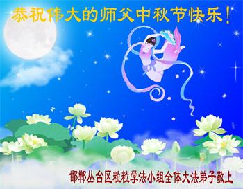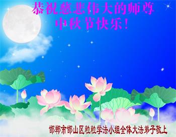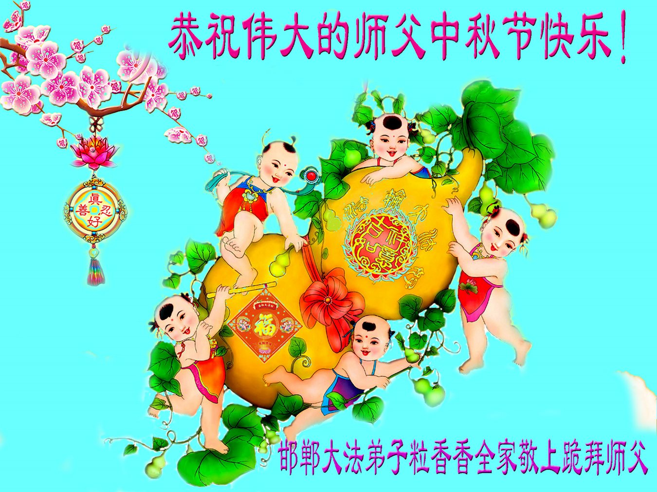 中秋節到,滄州市全體大法弟子問偉大的師父好!面對浩蕩師恩,弟子們無以回報,只有勇猛精進!恭祝偉大的師父中秋節快樂!
