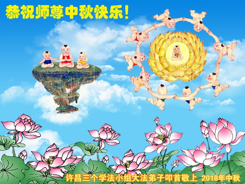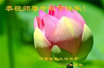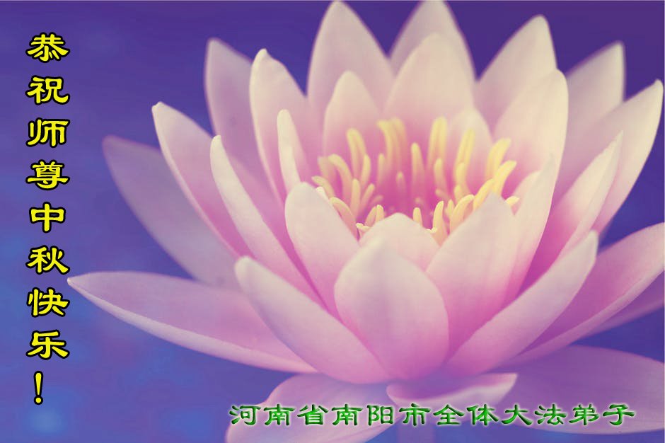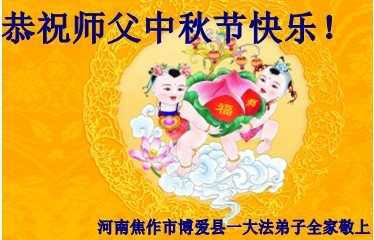 項城大法弟子恭祝慈悲偉大的師尊中秋節快樂!並表示一定要做好三件事,多救人,兌現自己的誓約,圓滿隨師還。