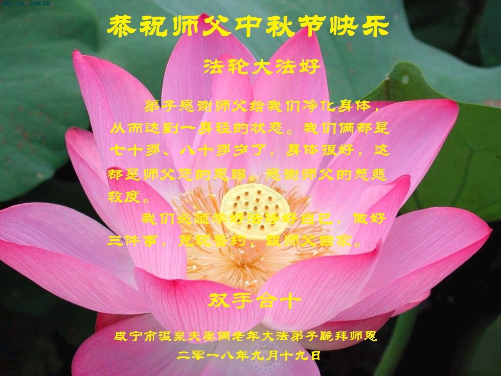 湖北省咸寧市溫泉夫妻倆老年大法弟子恭祝師父中秋節快樂!