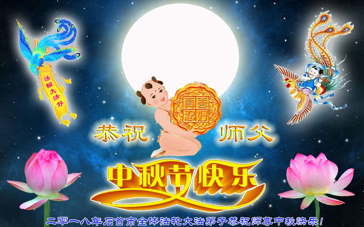 湖北省荊門市大法弟子恭祝師尊中秋節快樂!感恩師尊慈悲救度!弟子能時時感受到師父就在身邊看護著弟子,點悟著弟子。弟子一定更加精進,去除一切人心的執著,走好最後的路,做好三件事,兌現誓約,跟隨師父回家!