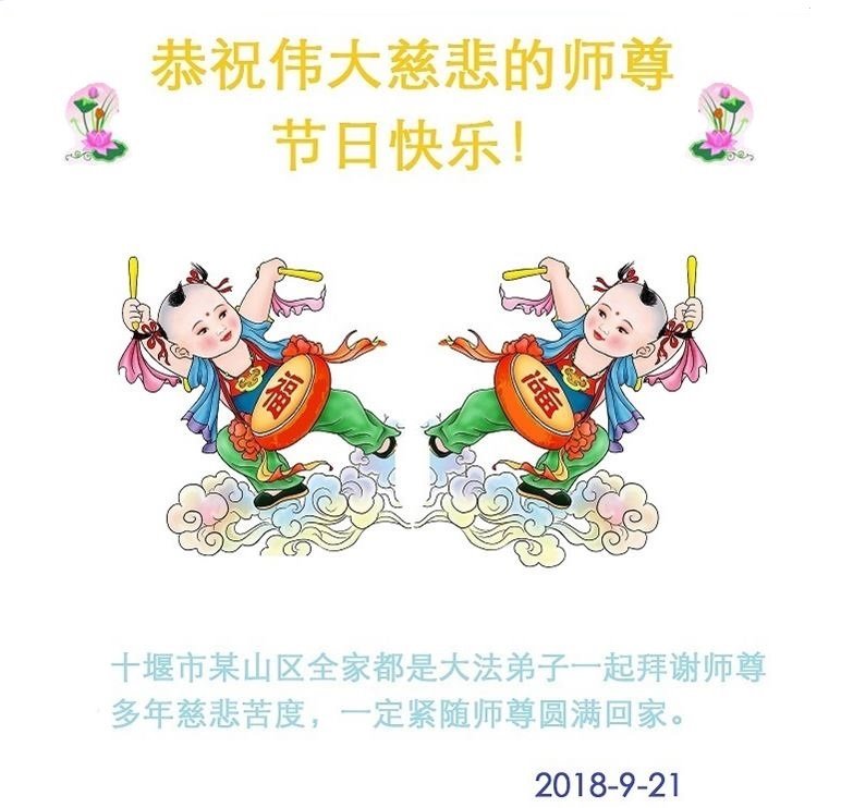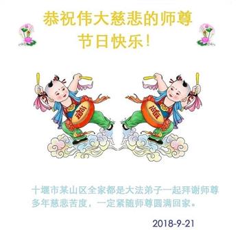 湖北省十堰市一大法弟子全家恭祝偉大慈悲師尊中秋節快樂!