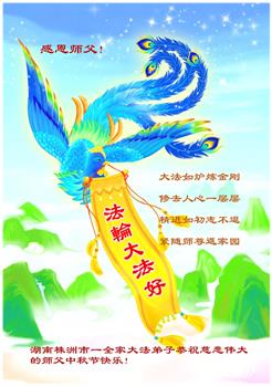 常德大法弟子攜全家二十六人向慈悲偉大師父問好!恭祝師父中秋快樂!