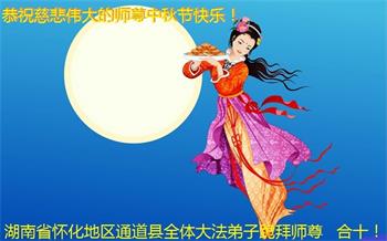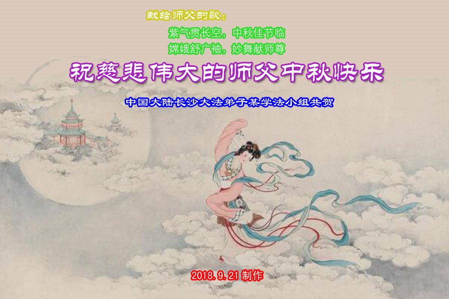 值此中秋佳節即將來臨之際,每逢佳節倍思親!此時弟子更加想念師父!我一定遵從您的教誨不忘自己是修煉人,不忘自己的使命和責任,腳踏實地的、踏踏實實的、像個大法弟子一樣的完成好自己該做的事。