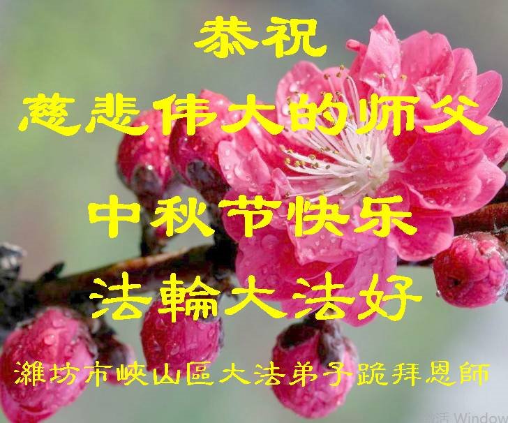 值此中秋佳節,濰坊高新區大法弟子祖孫三人恭祝慈悲偉大的師尊中秋節快樂!弟子想念師父,一定不辜負師尊的慈悲救度,做好三件事,跟師父回家。