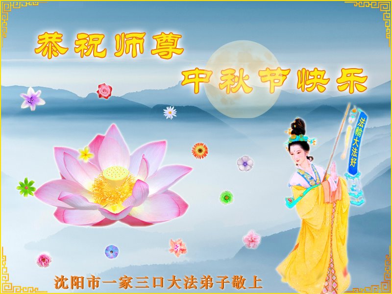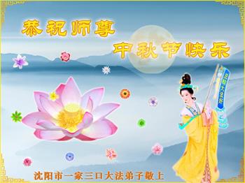 遼寧省瀋陽一家三口大法弟子恭祝師尊中秋節快樂!