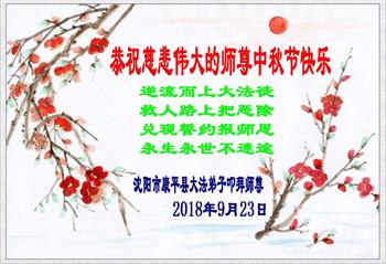 在這中秋佳節到來之時,弟子遙祝師尊中秋節快樂!弟子唯有聽師尊的話,做好三件事,修好自己,多救人,跟師尊回家。