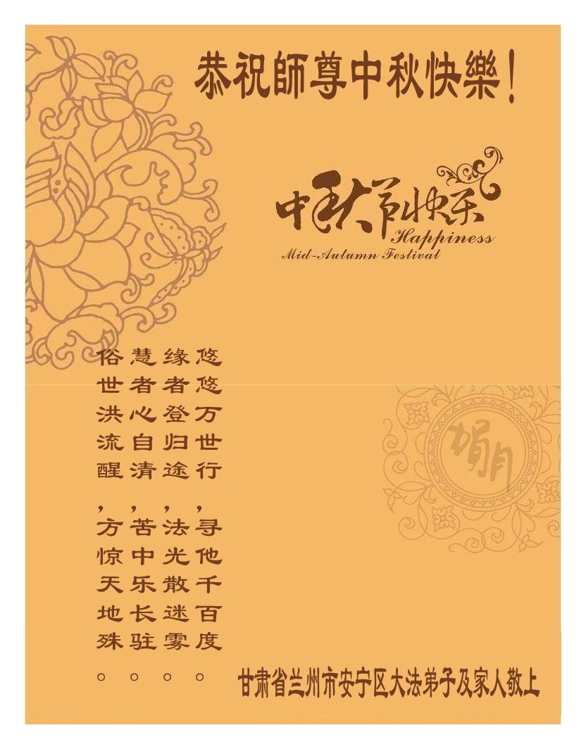 在這萬家團圓的時刻,我們倍思師尊!在此恭祝師尊中秋節快樂!我們精進修煉報師恩!弟子叩拜!