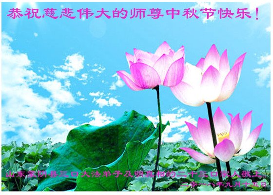 在中秋節來臨之際,敬祝師尊中秋節快樂!弟子一定要學好法,做好三件事,請師尊放心。弟子全家十一口向師尊叩首!