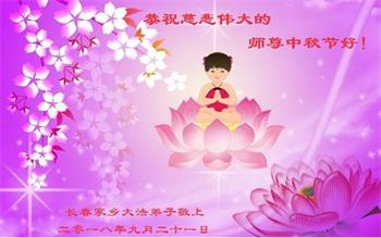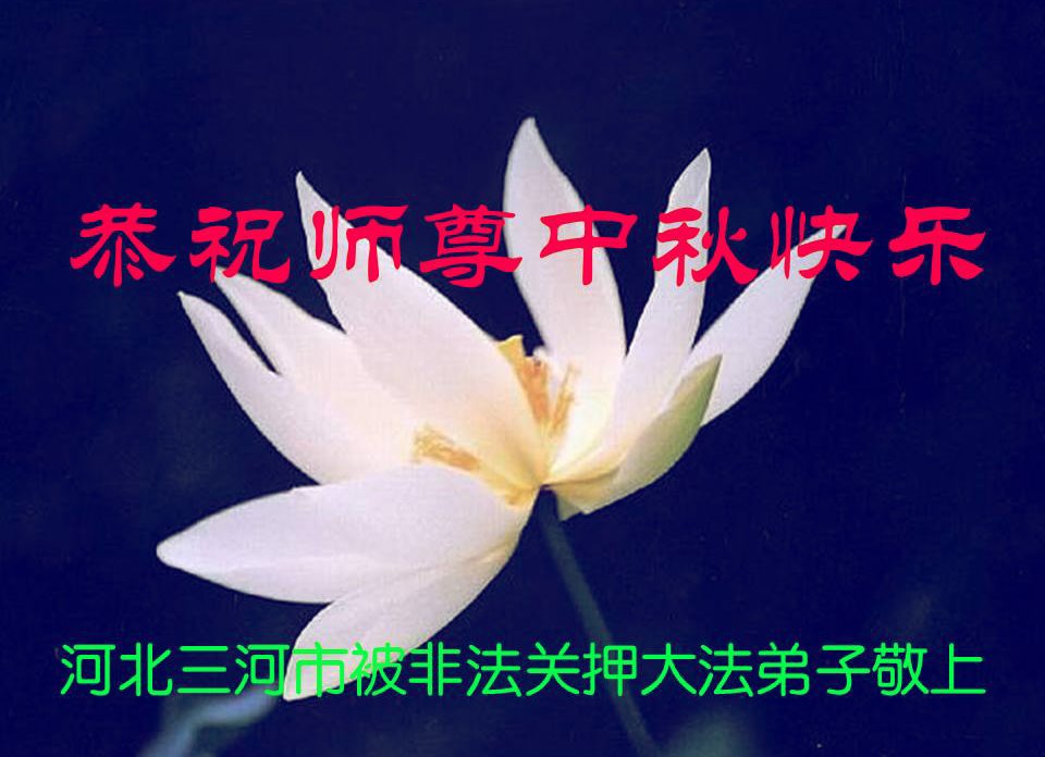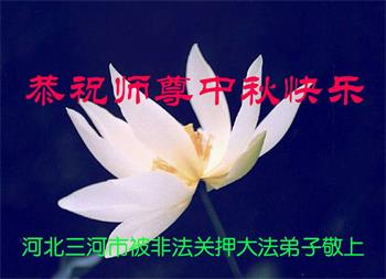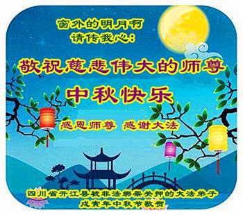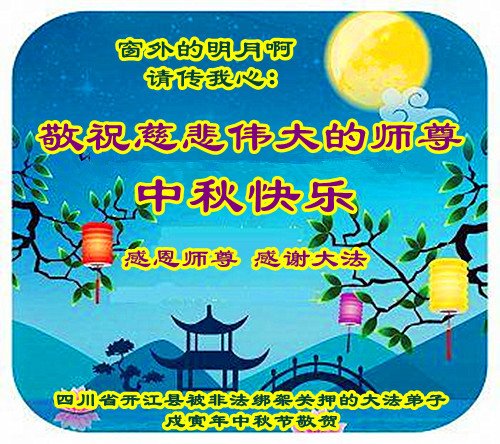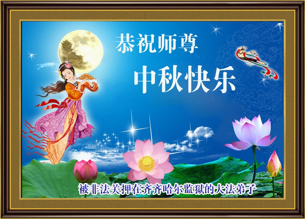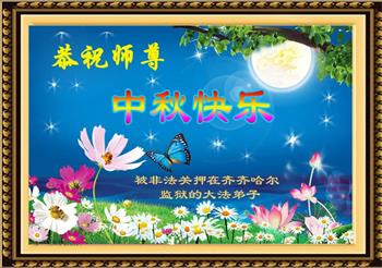 山東省濰坊市一位在監獄失去自由的大法弟子的妻子(同修),還有兒子恭祝慈悲偉大的師尊中秋節快樂!
