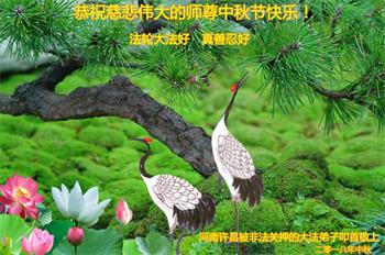 許昌大法弟子向偉大的師父問好!代表河南省鄭州市新密市監獄的大法弟子向偉大的師父問好!祝師尊中秋快樂!做好三件事,跟師父回家。