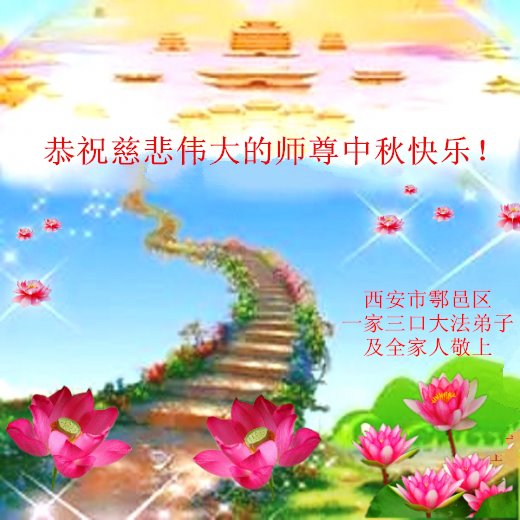 陝西省西安市一家庭大法弟子祝師父中秋快樂!