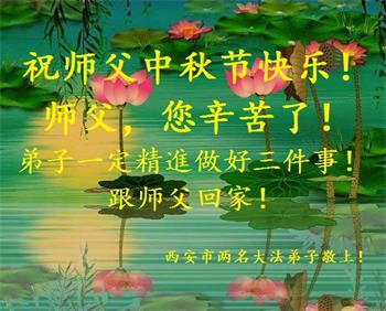 陝西省西安兩名大法弟子恭祝師父中秋節快樂!