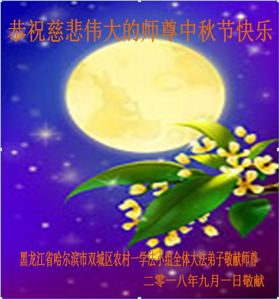代表全村大法弟子和家人恭祝師尊中秋節快樂!在今後的修煉中,事事向內找,在法中修心性,修去學大法為私為我保護自我的心,對師父對大法的有求之心,做好三件事,在法中精進。