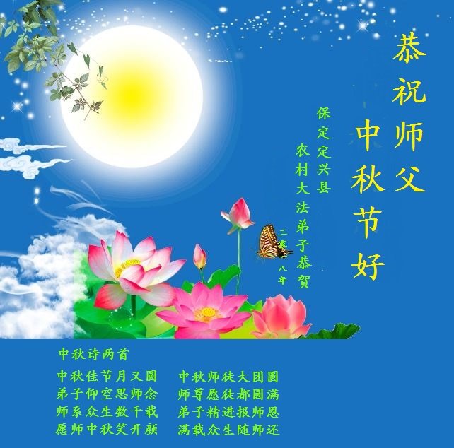 中秋佳節到了,大陸大法弟子恭祝師尊中秋節快樂!弟子感恩師尊的慈悲苦度!做好三件事,講清真相。