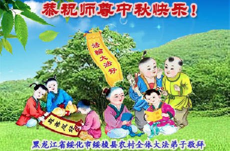 黑龍江省哈爾濱市賓縣鄉村大法弟子恭祝慈悲偉大的師父中秋節快樂!