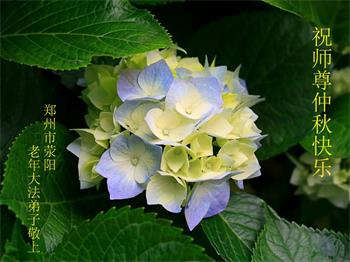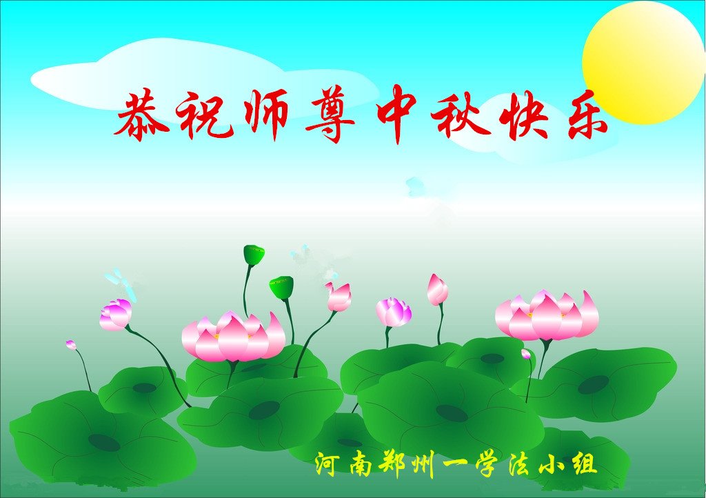 師父:弟子想念您!祝師父中秋節快樂!我們一定要好好學法,修好自己,做好三件事,跟師父回家。河南鄭州兩位大法弟子跪拜!