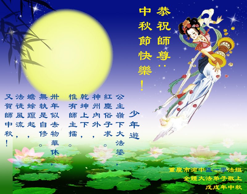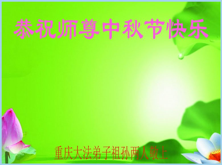 在中秋佳節到來之際,大法弟子全家向慈悲偉大的師父問好!我們做著一個大法弟子應做的三件事,請師父放心。恭祝師父節日快樂!