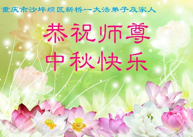 重慶市沙坪區新橋一大法弟子及家人恭祝慈悲偉大的師尊中秋快樂!