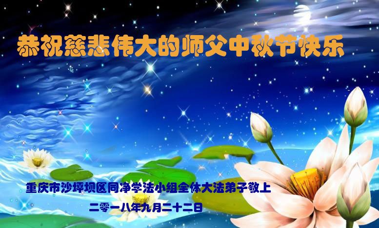 在戊戌年中秋到來之際,我們重慶渝北區一學法小組仨弟子,恭祝師父中秋快樂!