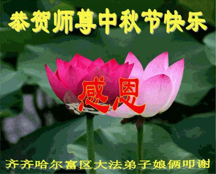 黑龍江省齊齊哈爾二位大法弟子恭祝師尊中秋快樂!