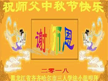 黑龍江省齊齊哈爾市三人學法小組大法弟子恭祝師尊中秋快樂!