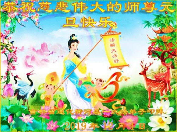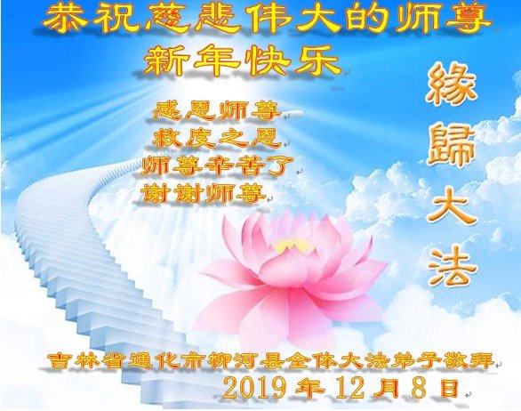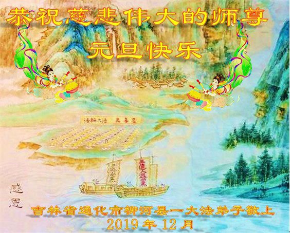 吉林省通化柳河縣一大法弟子恭祝慈悲偉大的師尊元旦快樂!師尊您好!師尊辛苦了!雖然與師尊遠隔萬里,卻有師尊時時在身旁守護。希望能早日得見師尊聖顏,跪謝師恩!祝慈悲偉大的師尊元旦快樂!謝謝師尊!