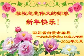 四川省自貢市榮縣一大法弟子攜14口家人恭祝慈悲偉大的師尊新年快樂!